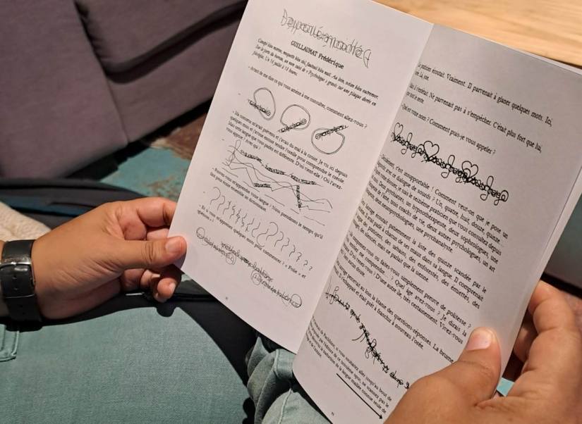Frédérique, qui a animé deux cycles d’ateliers d’écriture créative dans des structures de l’établissement public de santé mentale de La Réunion, est sensibilisée au sujet de la santé mentale. Pour écrire son texte, elle a imaginé un dialogue entre un psychologue et un patient parlant une langue inconnue.